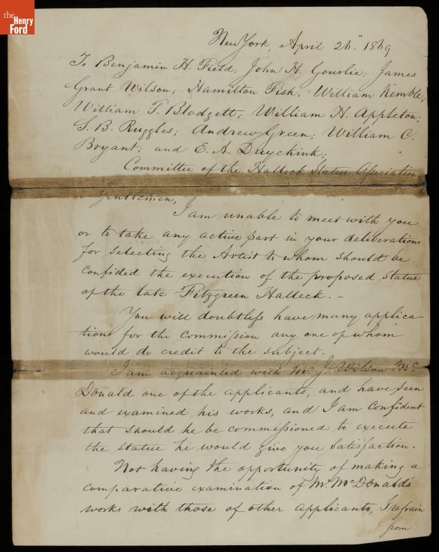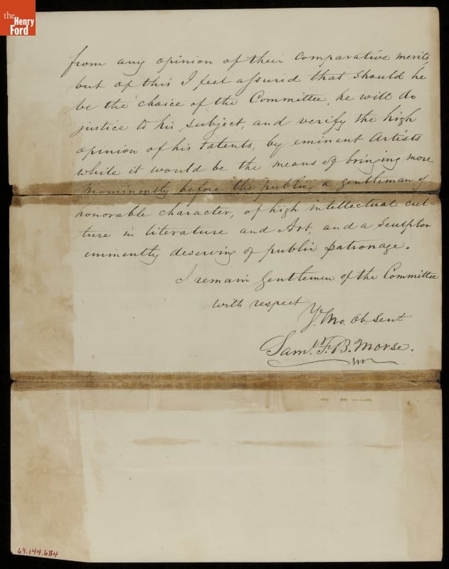Letter from Samuel Finley Breese Morse to the Committee of the Halleck Statue Association, 1869