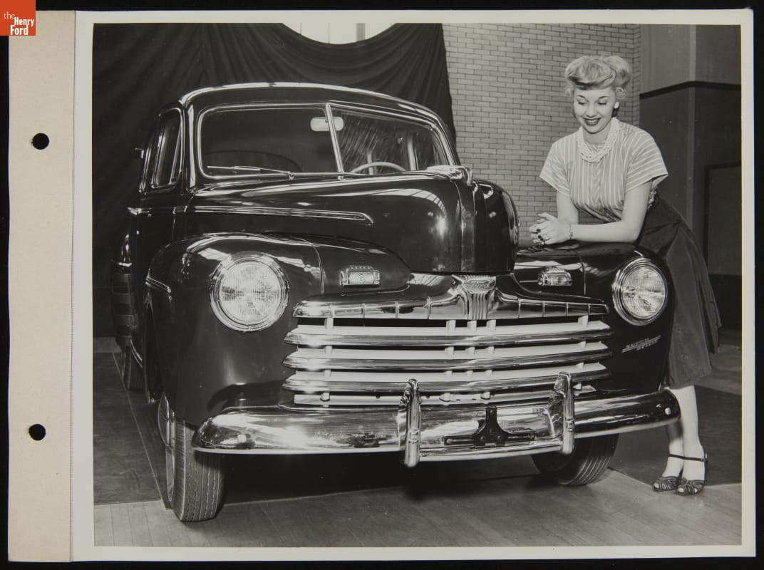 Leota Carroll was the first woman hired into Ford Motor Company's Design Department. Carroll, a talented illustrator, joined the company during World War II -- a time when most men were off fighting. Her success prompted Ford to hire other women onto its design staff. In addition to her regular duties, Carroll also occasionally posed in Ford promotional photographs.