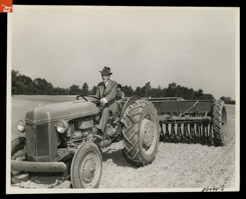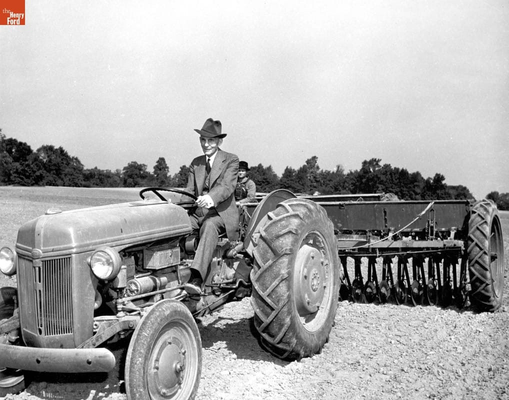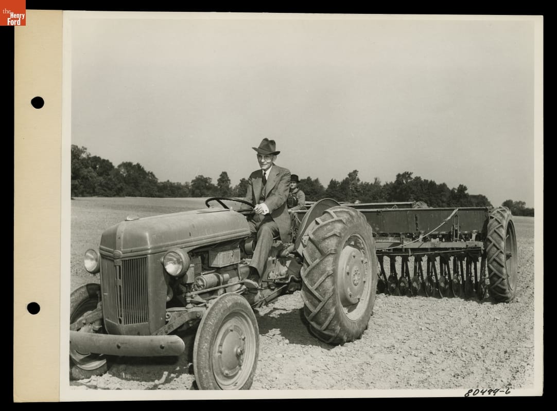 Henry Ford Driving Ford-Ferguson Model 9N Tractor at Hayden Mills, Tecumseh, Michigan, 1944