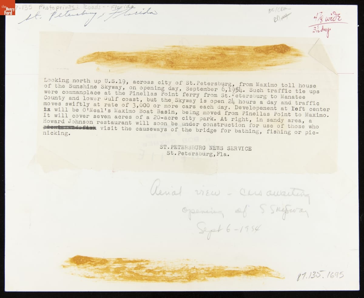 Looking North across St. Petersburg, Florida from the Sunshine Skyway Bridge on Its Opening Day, September 6, 1954