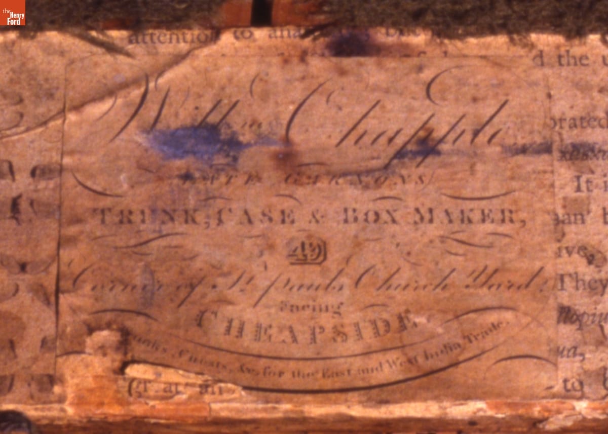 Engraved on oval brass plate on chest lid: No. 3 / General / George / Washington / 1783