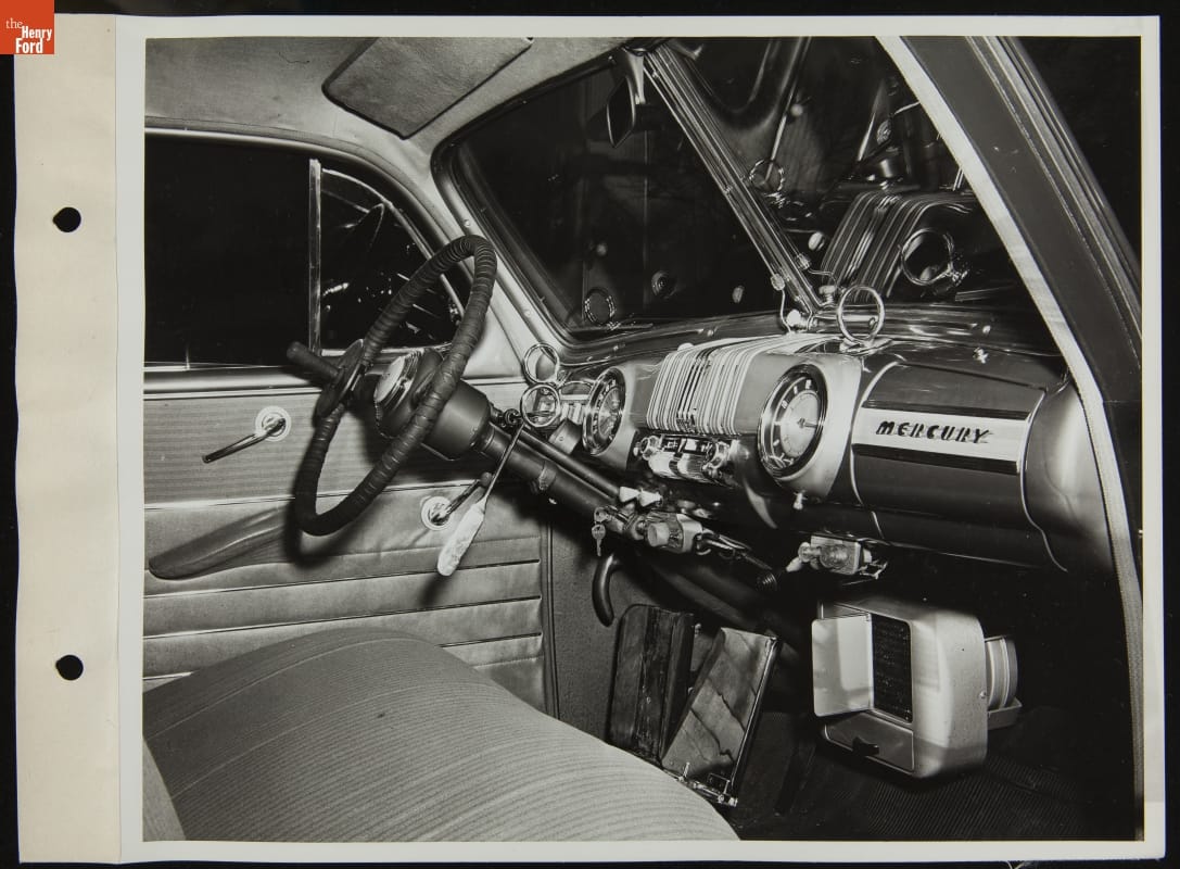 More than 670,000 American soldiers were wounded in World War II. Many of them returned home with lasting injuries. Ford Motor Company's Mercury Division adapted this car for use by drivers without hands. Control-mounted rings and a special steering wheel spinner made it possible to operate the car with prosthetic hooks.