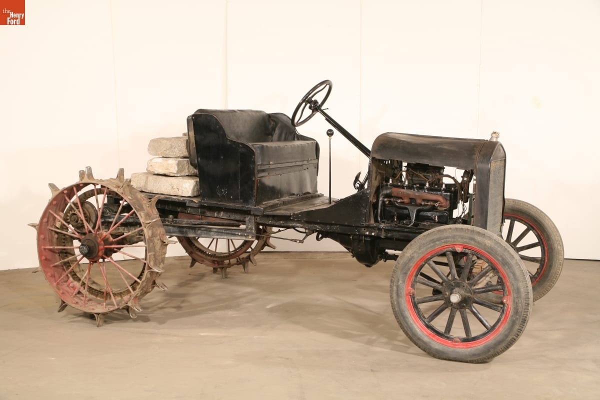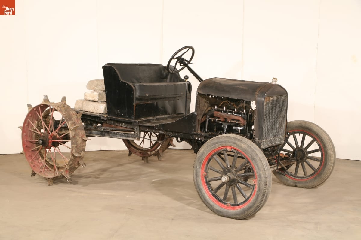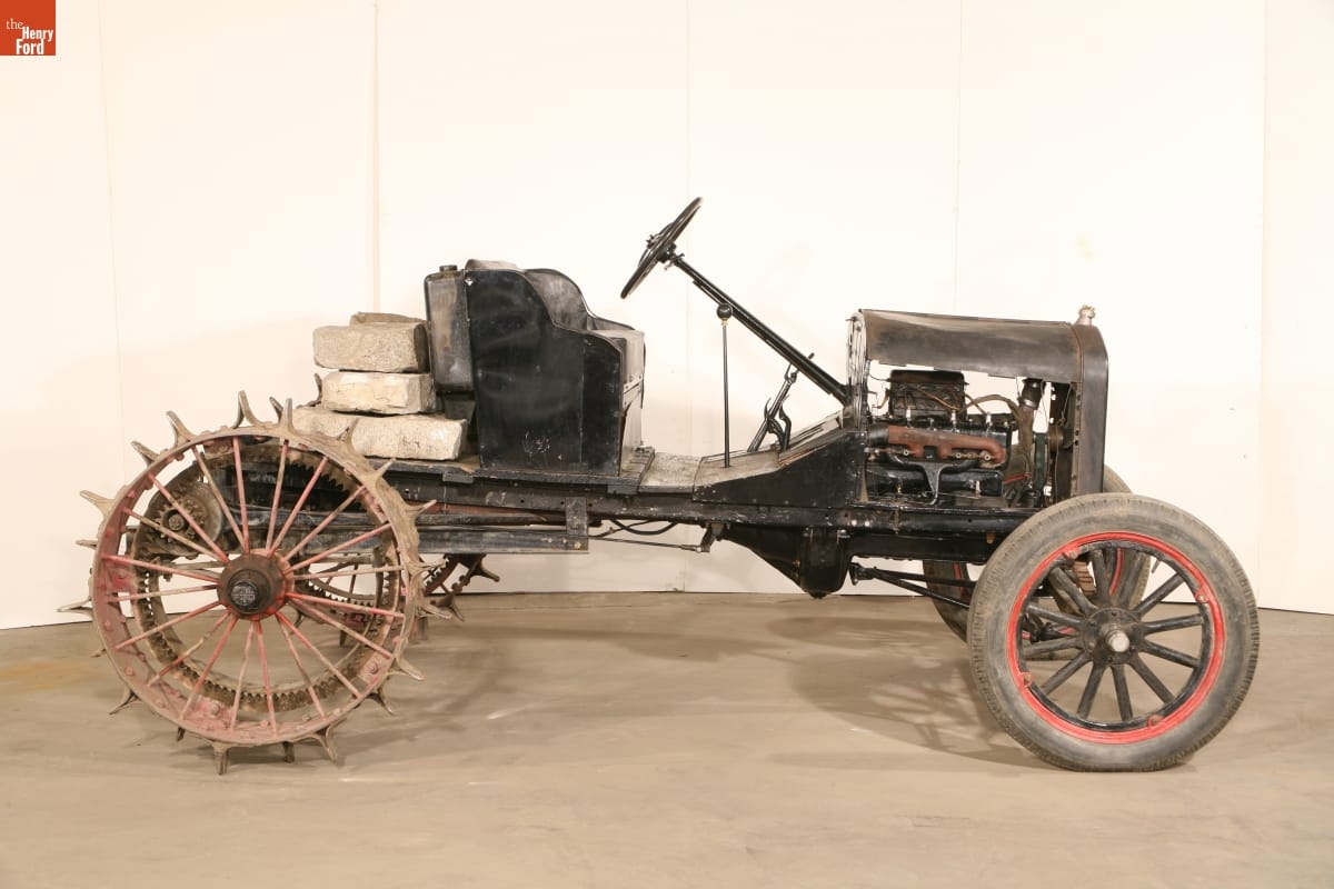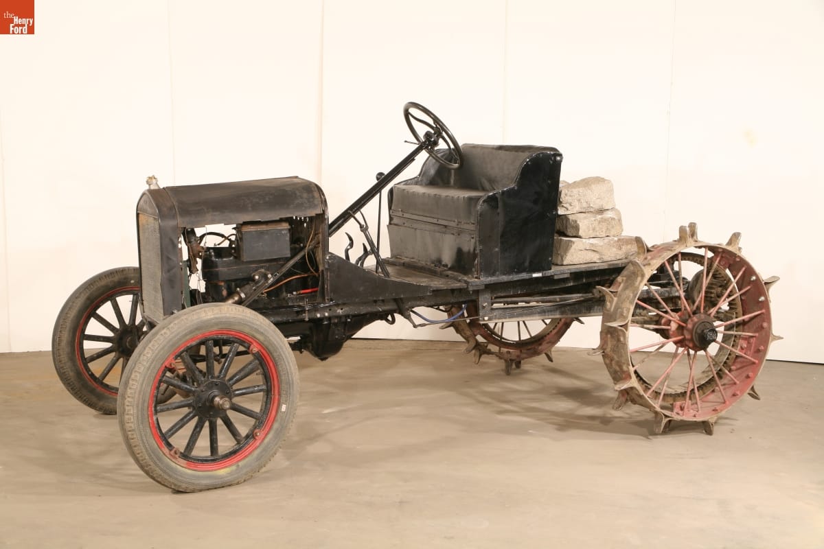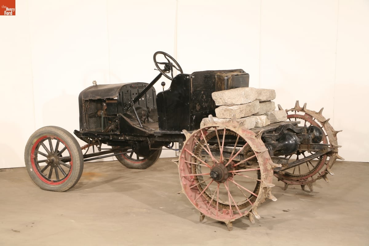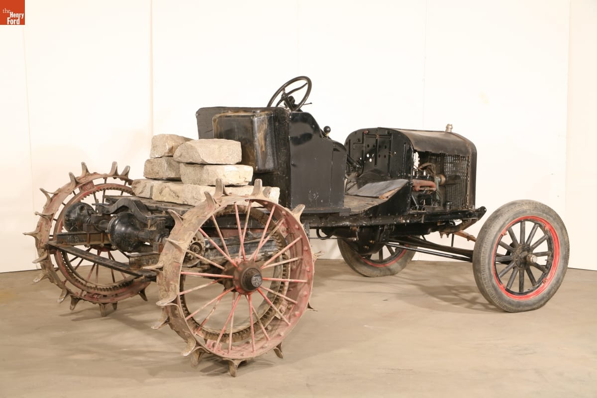 Original 1923 Ford Model T automobile manufactured by Ford Motor Company, probably at the Ford plant in Highland Park, Michigan; tractor conversion kit manufactured by Pullford Company in Quincy, Illinois.