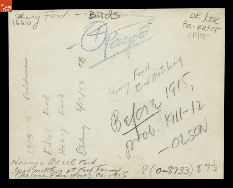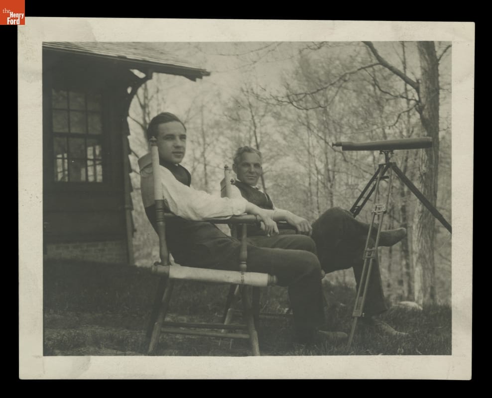 Henry Ford and Edsel Ford Birdwatching at "The Bungalow," Dearborn, Michigan, 1910-1915