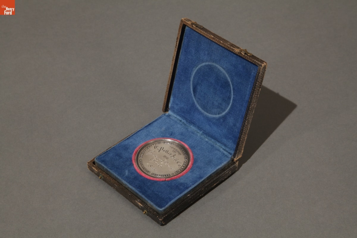Between 1870 and 1888 Cincinnati businessmen backed a series of fairs to promote their city. Exhibitors to these Cincinnati Industrial Expositions displayed inventions, artwork, and manufactured goods. Officials awarded medals and other premiums to participants whose products illustrated important cultural or technological contributions. C. Potter and Company received this medal for its printing press.