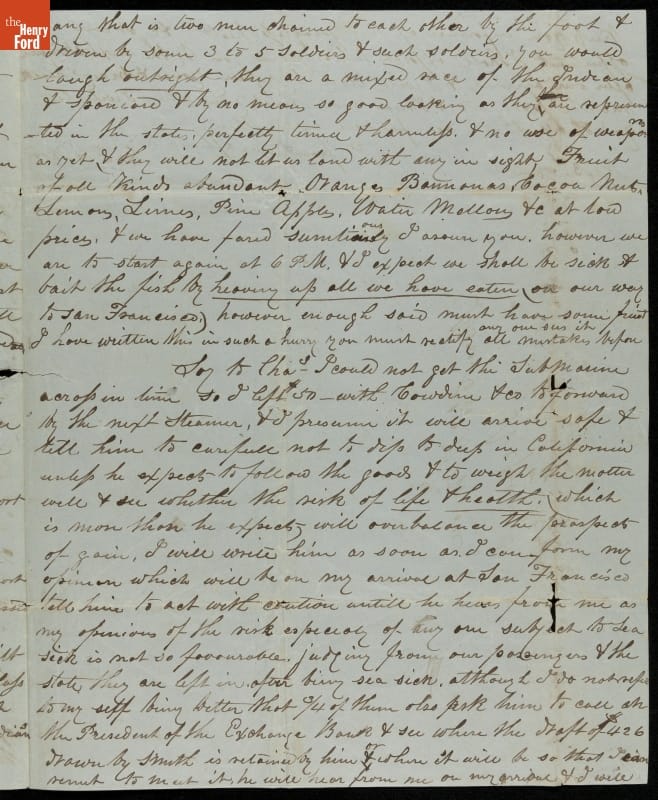 Letter by California Gold Rush Venturer Charles A. Wood, Written from Acapulco, Mexico, February 10, 1850