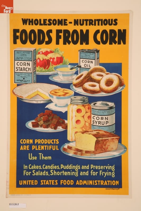 World War I Poster, "Wholesome - Nutritious Foods from Corn, " 1918