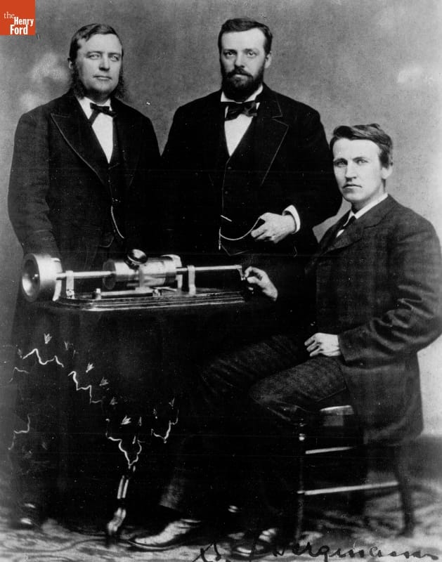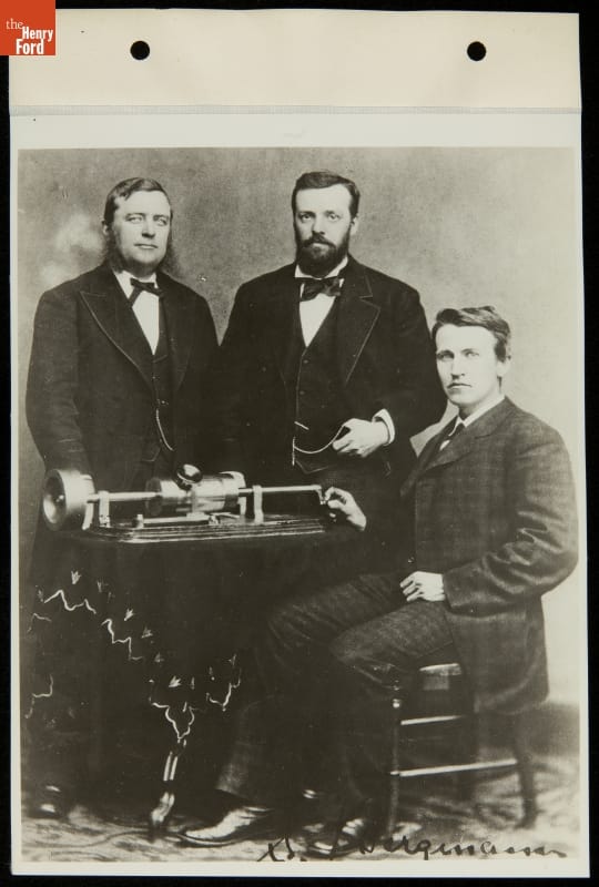 While in Washington, D.C., for an 1878 presentation to the National Academy of Sciences, inventor Thomas Edison, his lab assistant Charles Batchelor, and Philadelphia Inquirer correspondent Uriah Painter sat for famed Civil War photographer Mathew Brady. They posed with Edison's phonograph, a new invention that could, for the first time, record and reproduce sound. The machine made Edison an overnight celebrity.