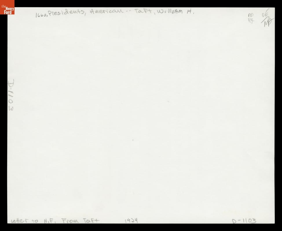 Original letter by William H. Taft, Washington, D.C. Photographed by Ford Motor Company Archives.