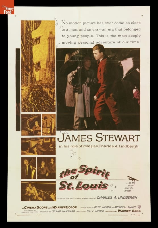 The 1957 film The Spirit of St. Louis recounted Charles Lindbergh's early years in aviation and his historic solo transatlantic flight of 1927. Based on Lindbergh's Pulitzer Prize-winning memoir of the same name, the film starred the celebrated screen actor James Stewart. The movie was a passion project for Stewart, a great admirer of Lindbergh and an enthusiastic pilot himself.