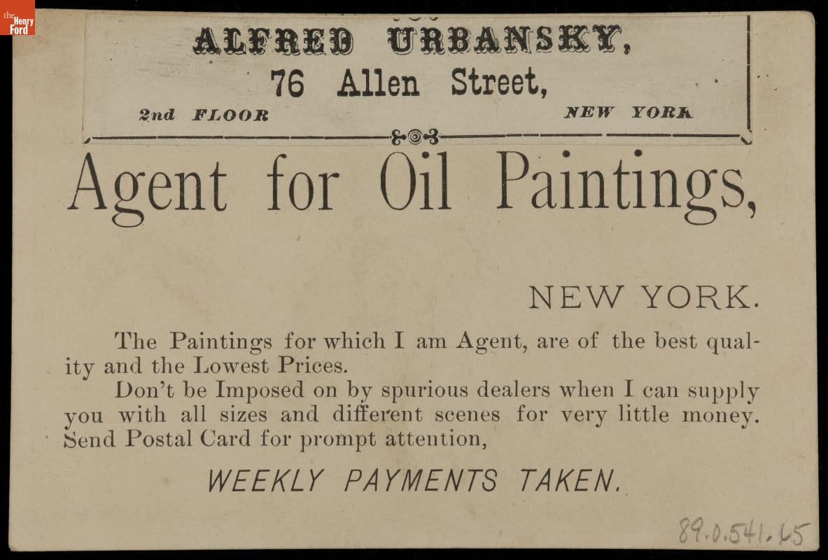 Trade Card for Alfred Urbansky, Agent for Oil Paintings, 1887