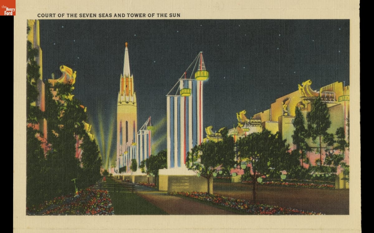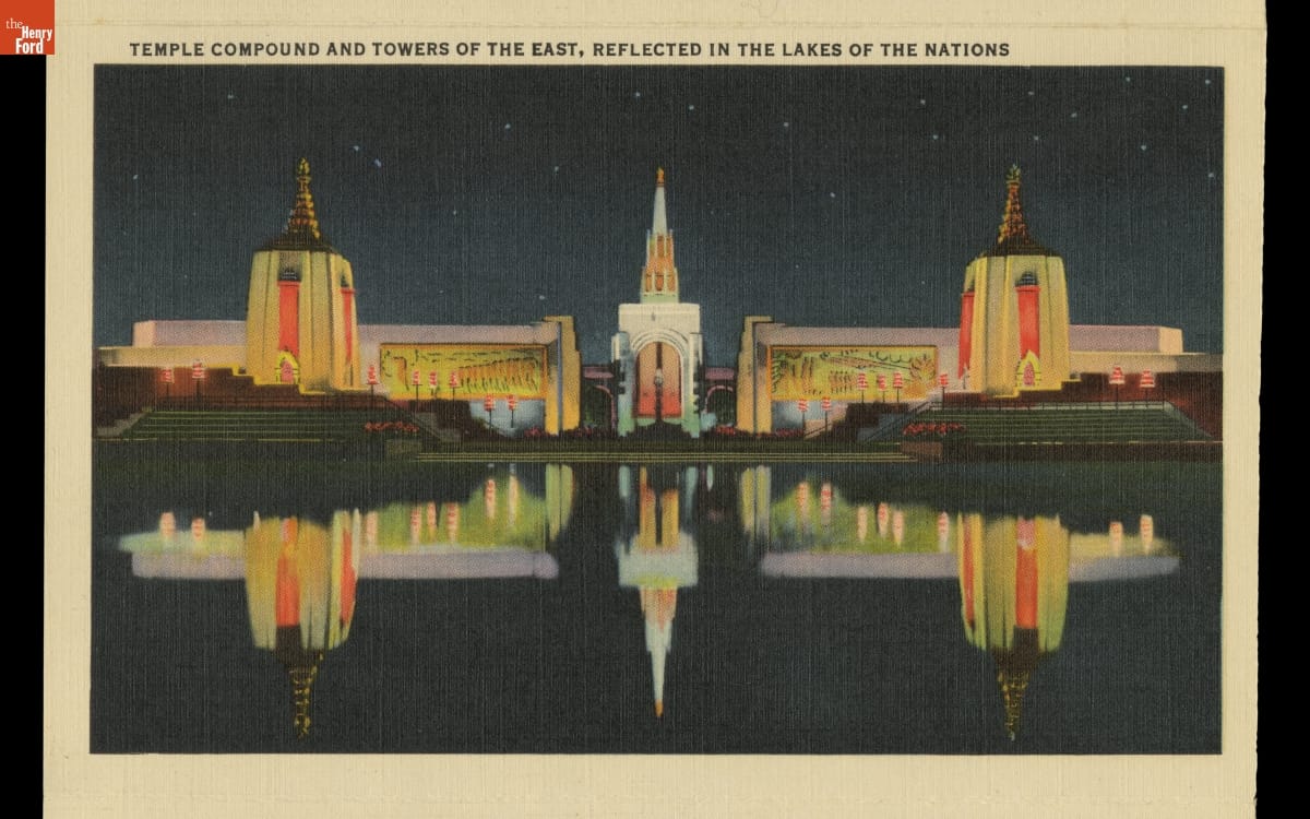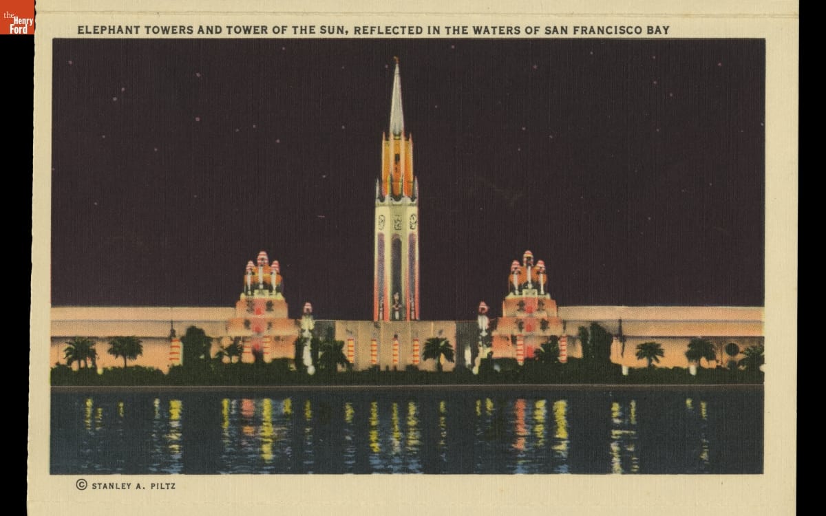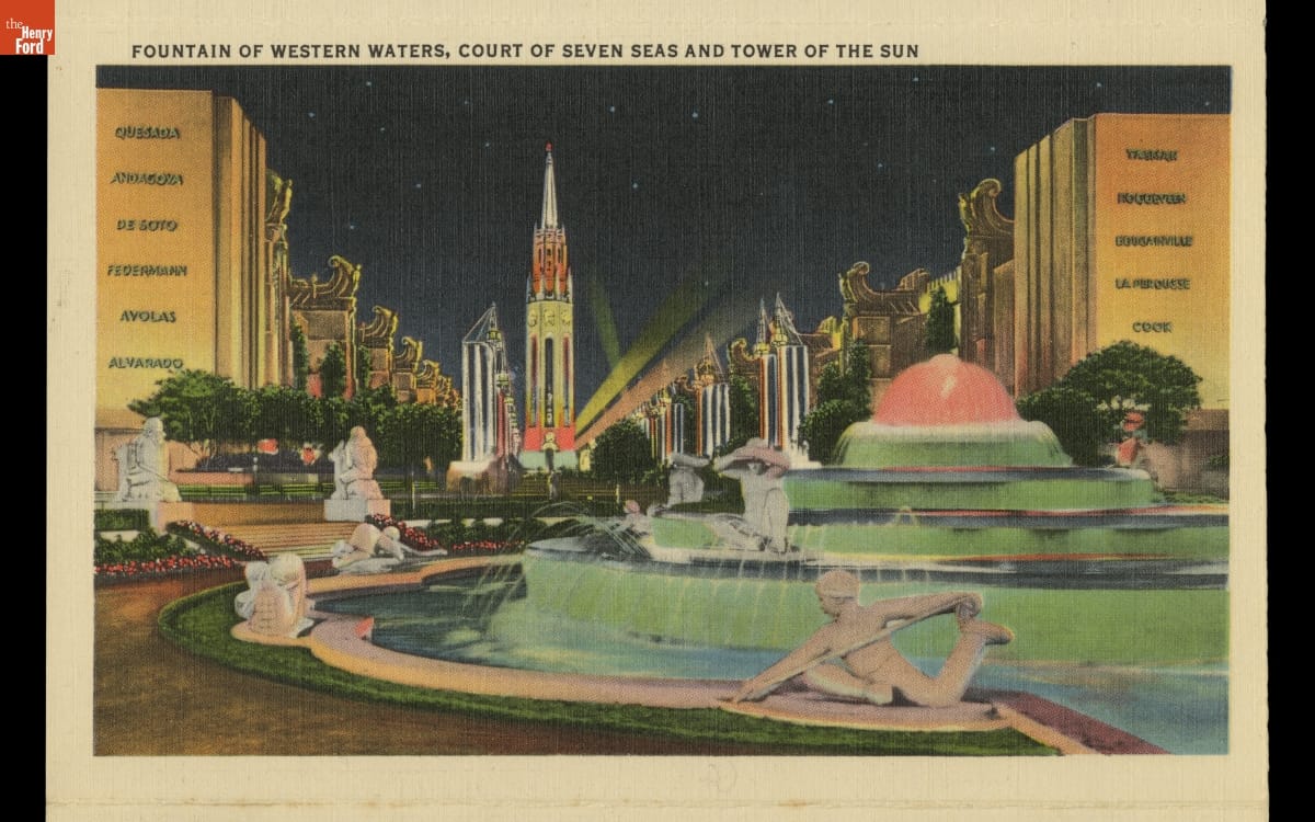 The 1939-1940 Golden Gate International Exposition -- noted here as the California World's Fair on San Francisco Bay -- showcased the nations of the Pacific Rim and celebrated the completion of the Golden Gate and Oakland Bay Bridges. Millions of fairgoers flocked to the man-made Treasure Island to visit the fair. Many returned home with souvenirs, like this packet of 18 fold-out postcard images.