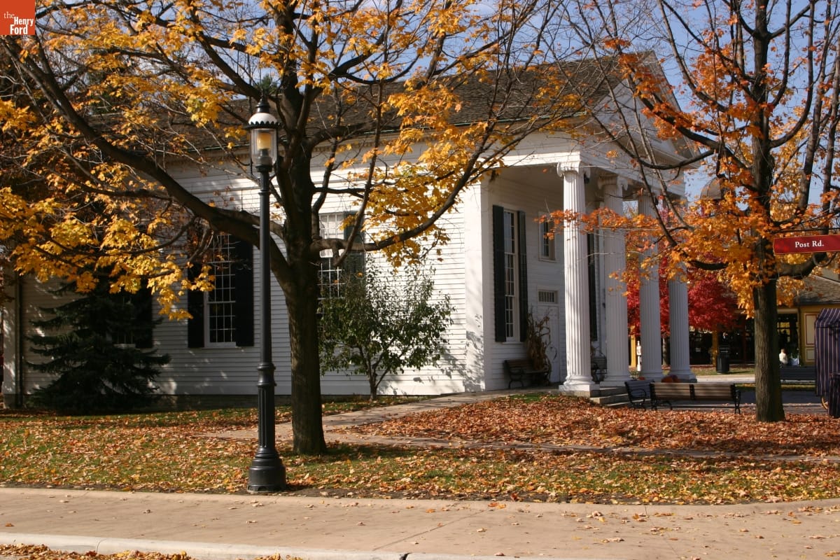 An iconic sight in New England communities, the town hall was the place where local citizens would come together to participate in town meetings. These buildings also became gathering places for political elections, theatrical performances, and social events. Built in Greenfield Village in 1929, this town hall was patterned after New England town halls of the early 1800s.
