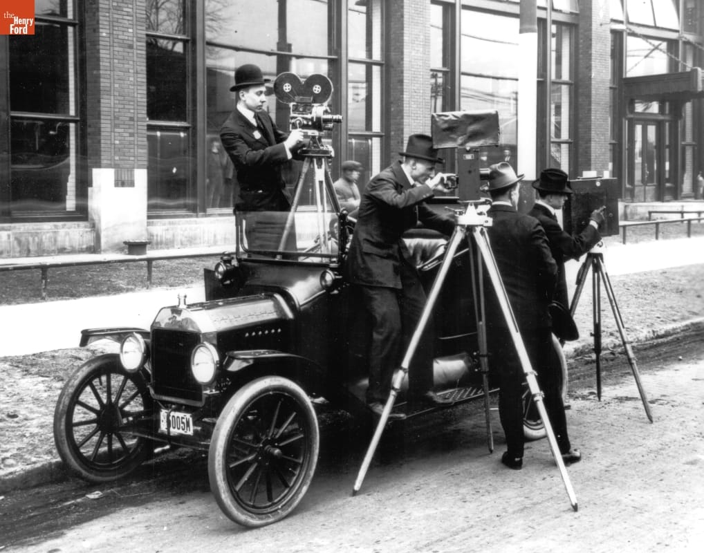 Ford Motor Company Photographers with Ford Model T Touring Car outside the Highland Park Plant