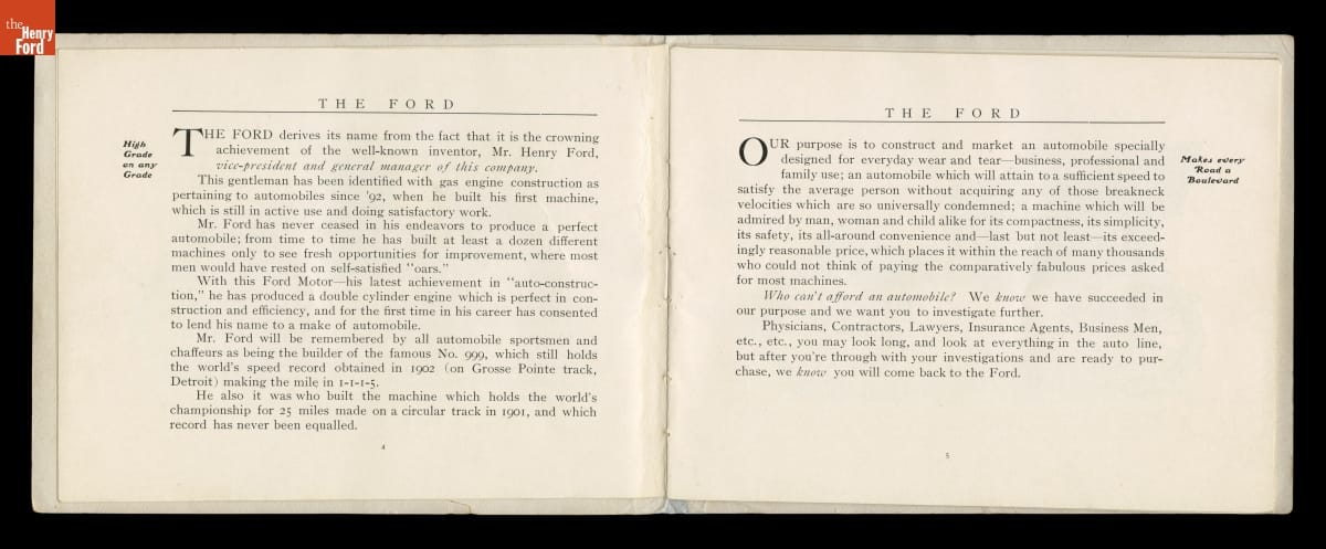 1903 Catalog, "Ford-- High Grade on Any Grade"