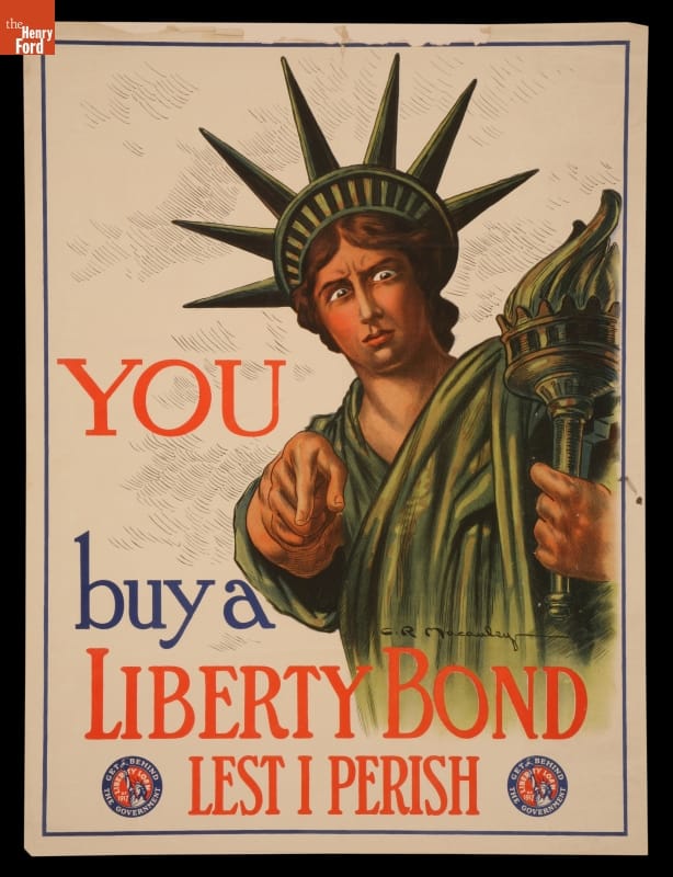 Text from top down reads: YOU / buy a / LIBERTY BOND / LEST I PERISH.