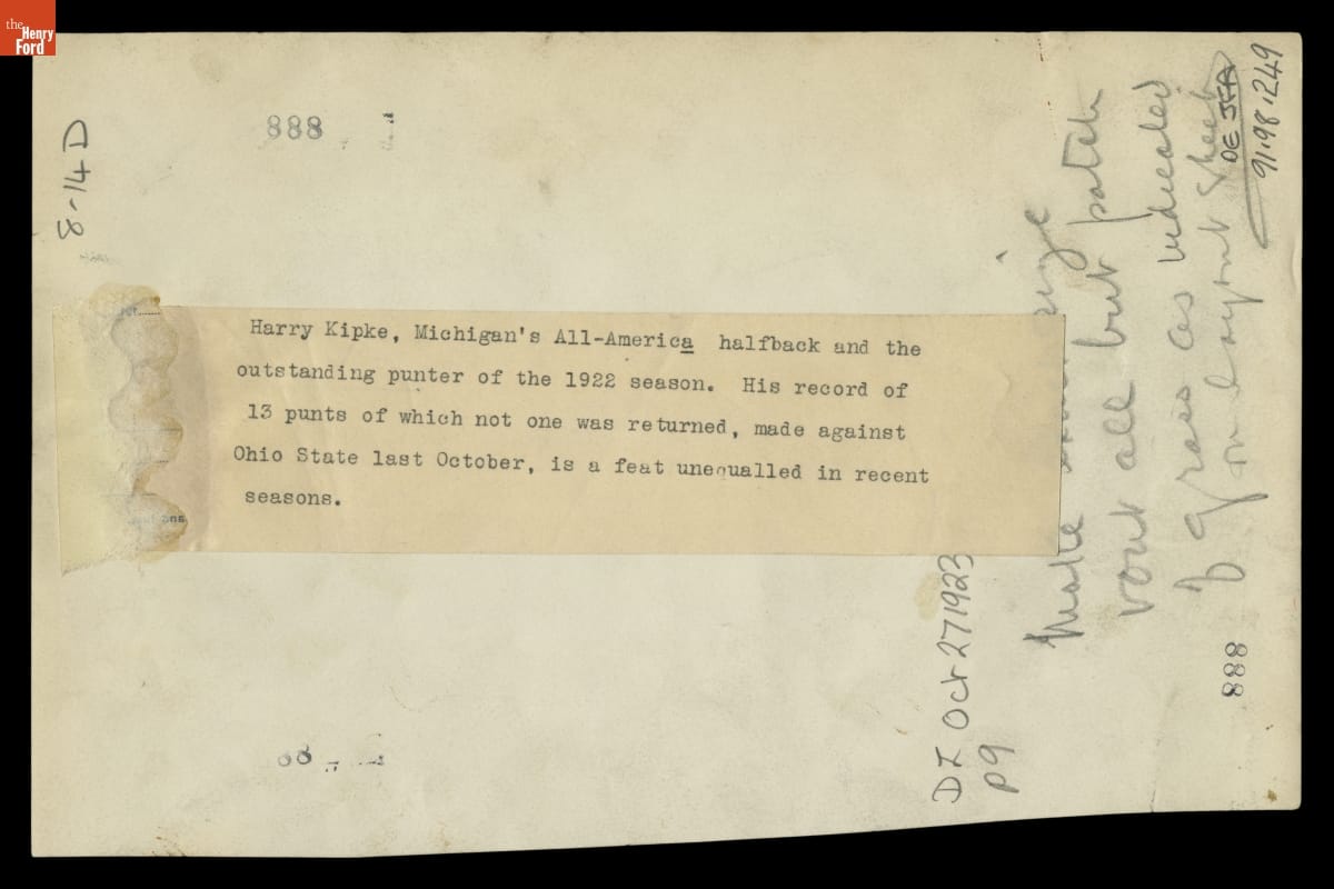 University of Michigan Football Player Harry Kipke, 1922-1923