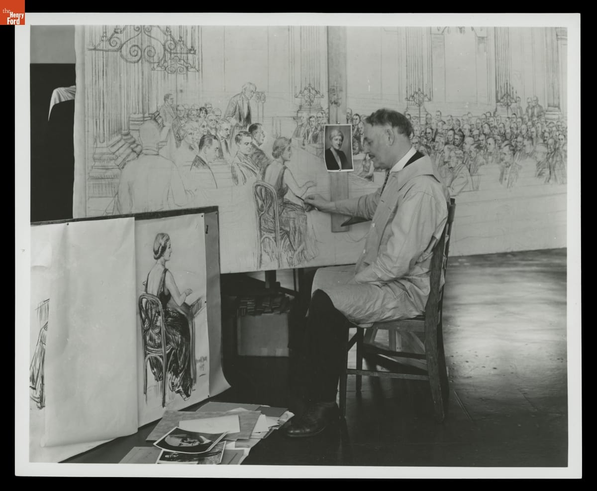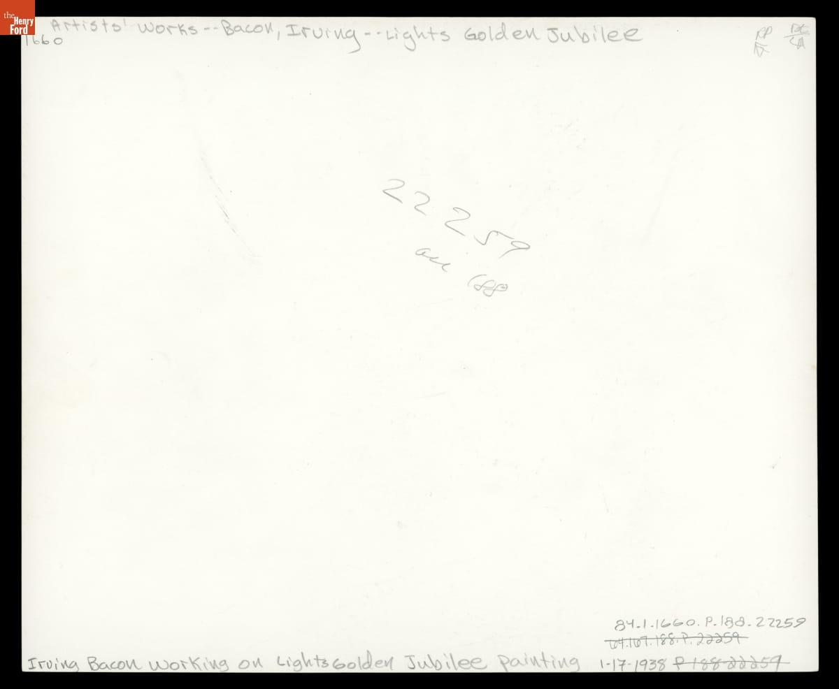 Irving Bacon Works on the Painting of Light's Golden Jubilee, January 17, 1938