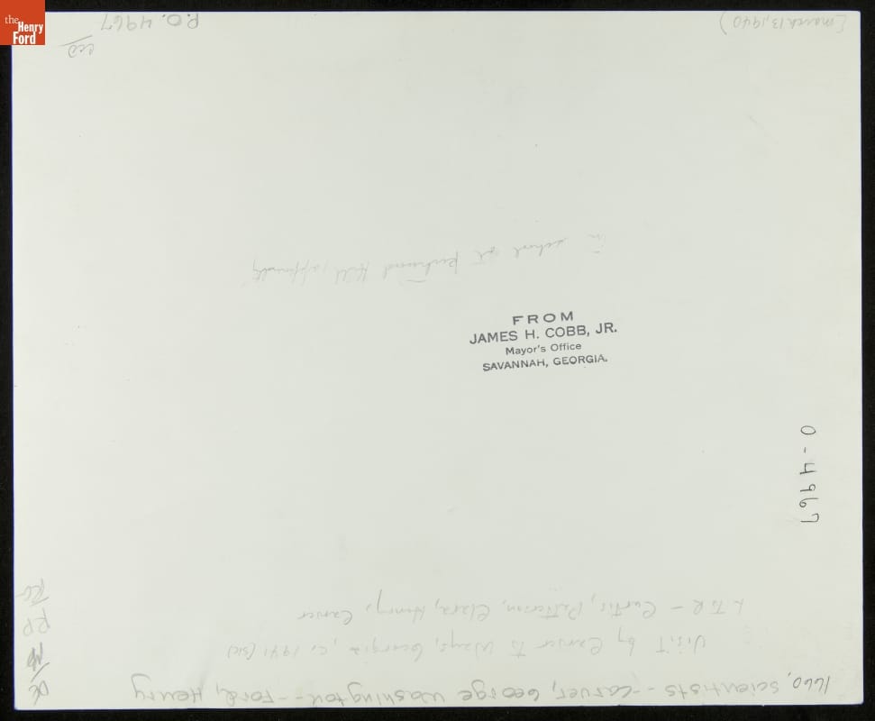 Clara Ford, Henry Ford, and George Washington Carver at the Carver School Dedication, Richmond Hill, Georgia, 1940