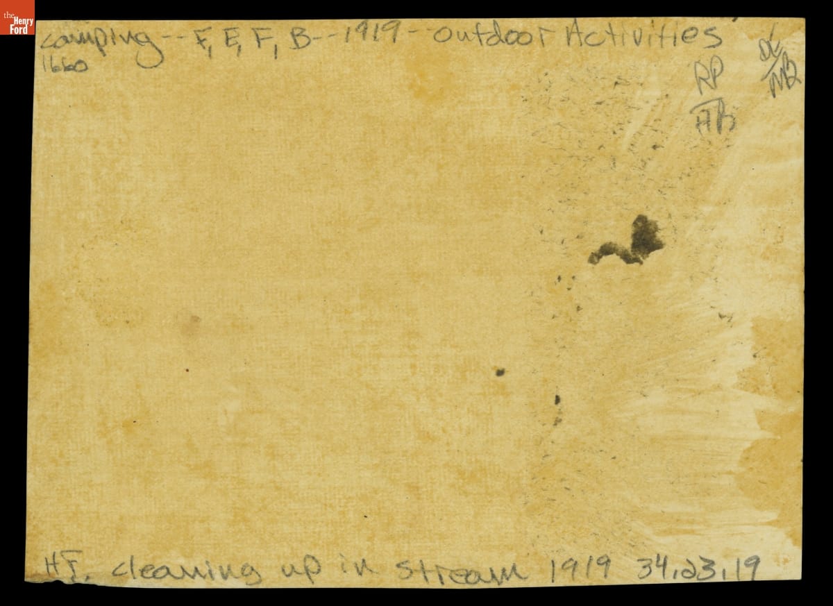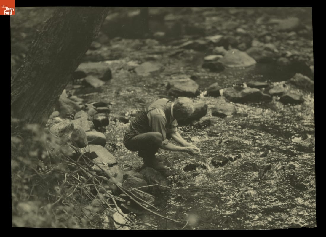 Calling themselves the Vagabonds, Henry Ford, Thomas Edison, Harvey Firestone, and John Burroughs made yearly camping trips between 1916 and 1924. This photograph of Henry Ford is from their 1919 excursion, when the friends visited New York, Vermont, New Hampshire, Massachusetts, and Connecticut. The next year, their wives would join, rendering the trips decidedly more formal and less adventurous.