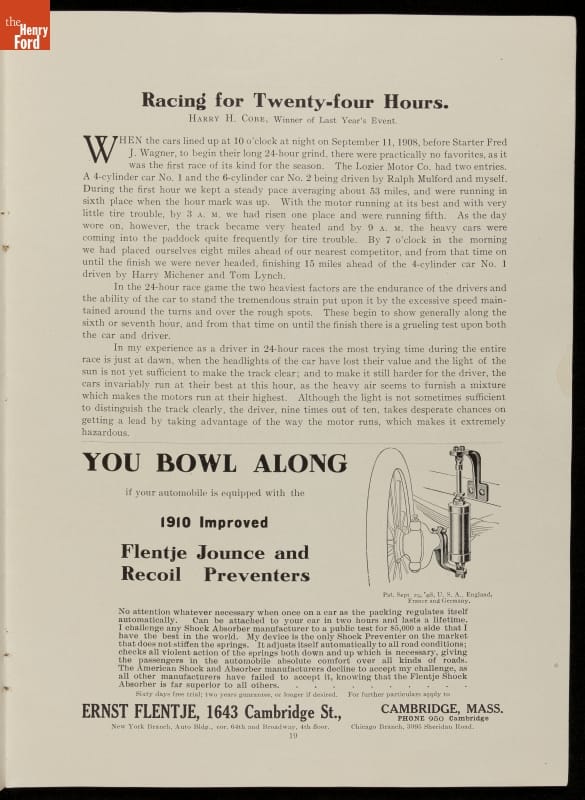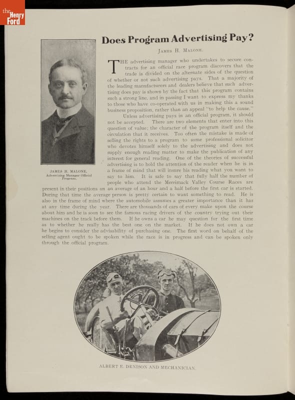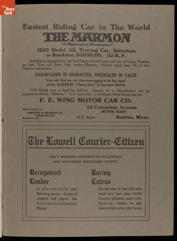 Racing Program, "Merrimack Valley Course," Lowell, Massachusetts, 1909