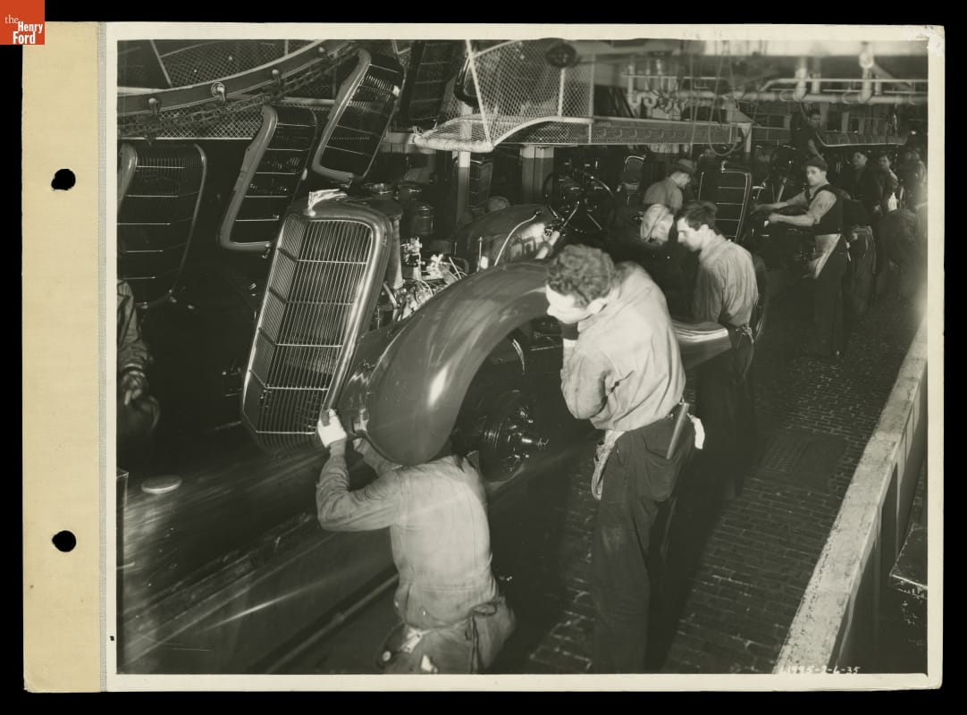 Radiator Grille and Fender Installation on Final Assembly Line, Ford Rouge Plant, 1935