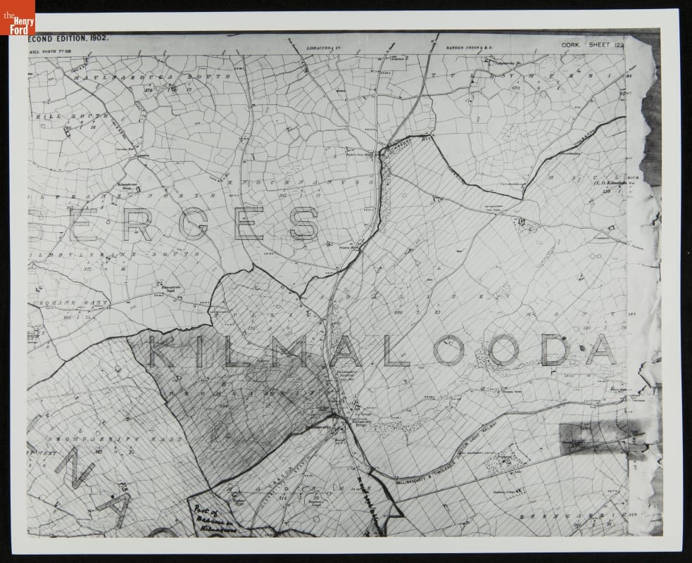 Henry Ford's ancestors had roots in County Cork, Ireland. His grandfather, John Ford, was born near the town of Ballinascarthy. John and his sons -- including Henry's father, William -- farmed a section of land he had leased in 1819. They tended this land until they immigrated to America in 1847. This map shows the area of County Cork where many of Ford's ancestors resided.