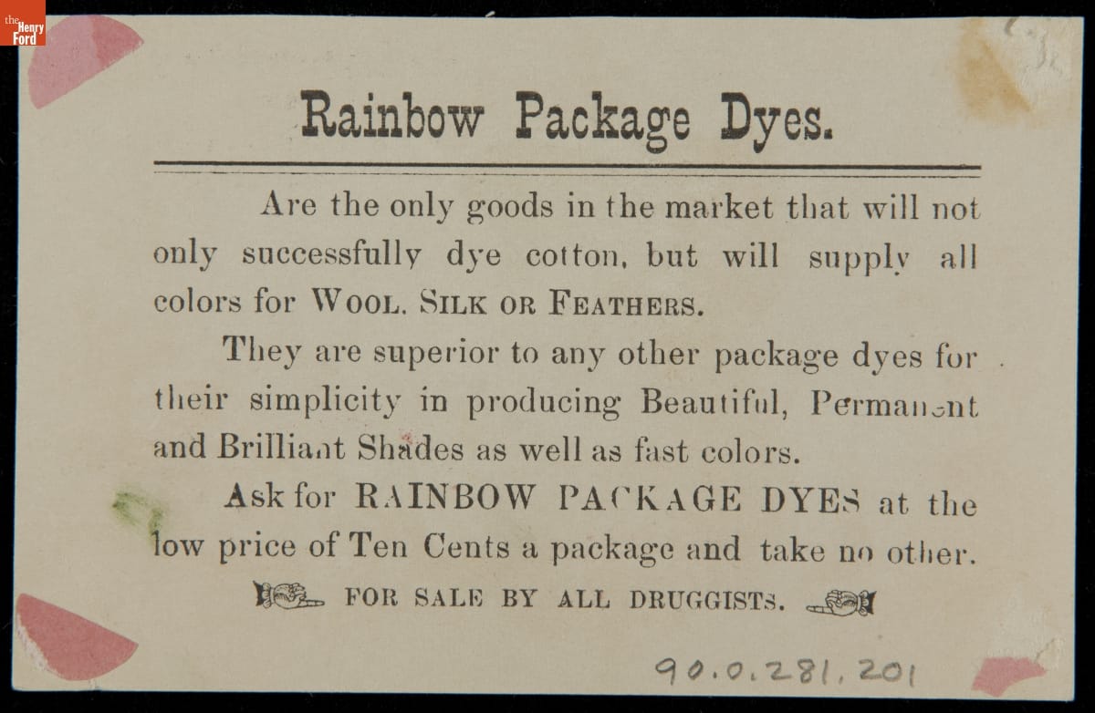 Trade Card for Rainbow Dyes, Farrand, Williams & Co., 1870-1890