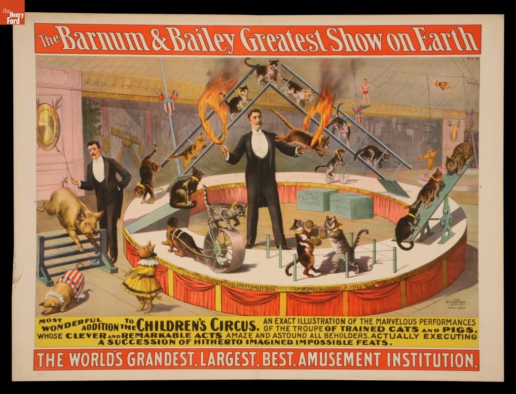 Circus Poster, Barnum and Bailey Present "Marvelous Performances of the Troupe of Trained Cats and Pigs," circa 1895