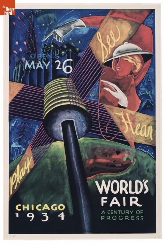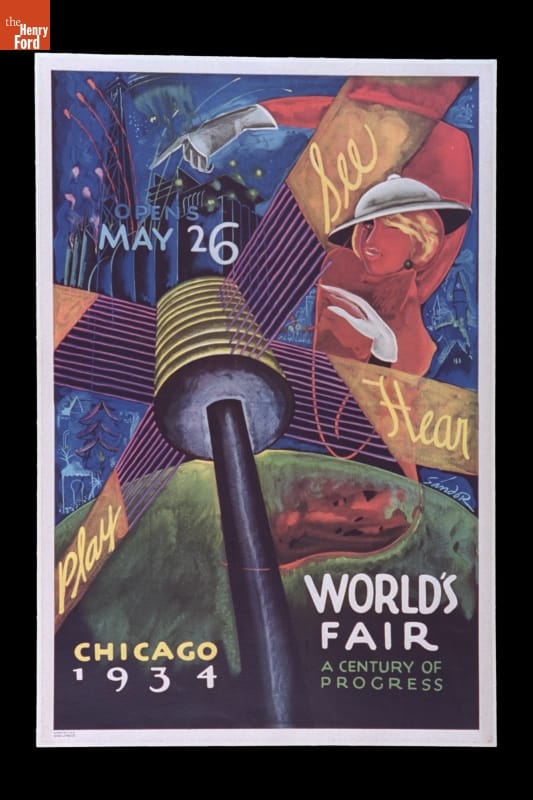 Poster, "See, Play, Hear. Chicago 1934 World's Fair: A Century of Progress," 1934