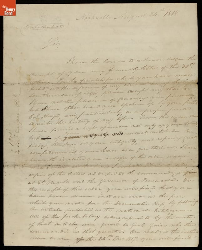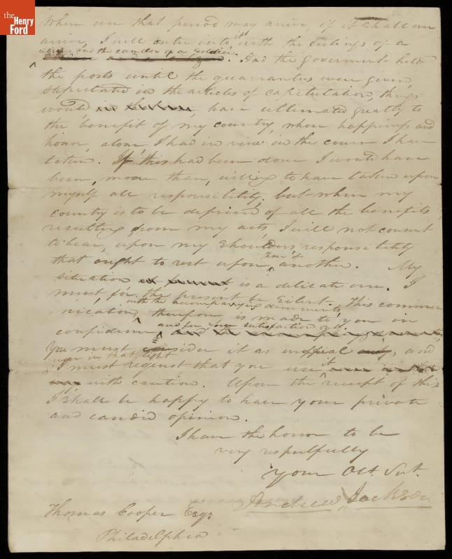 Letter from Andrew Jackson to Thomas Cooper, 1818