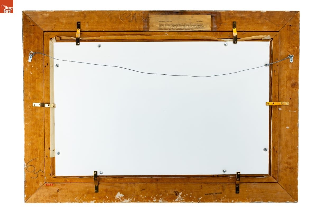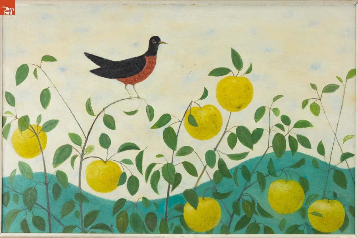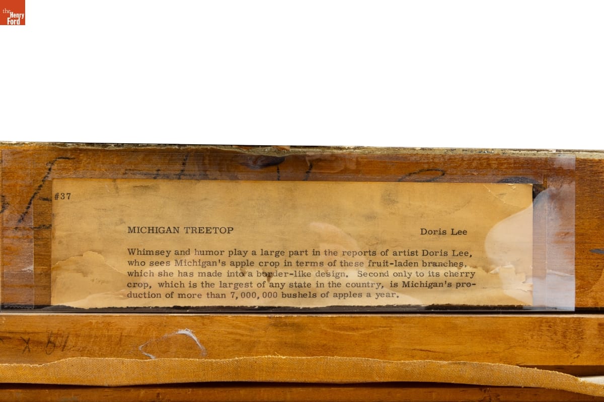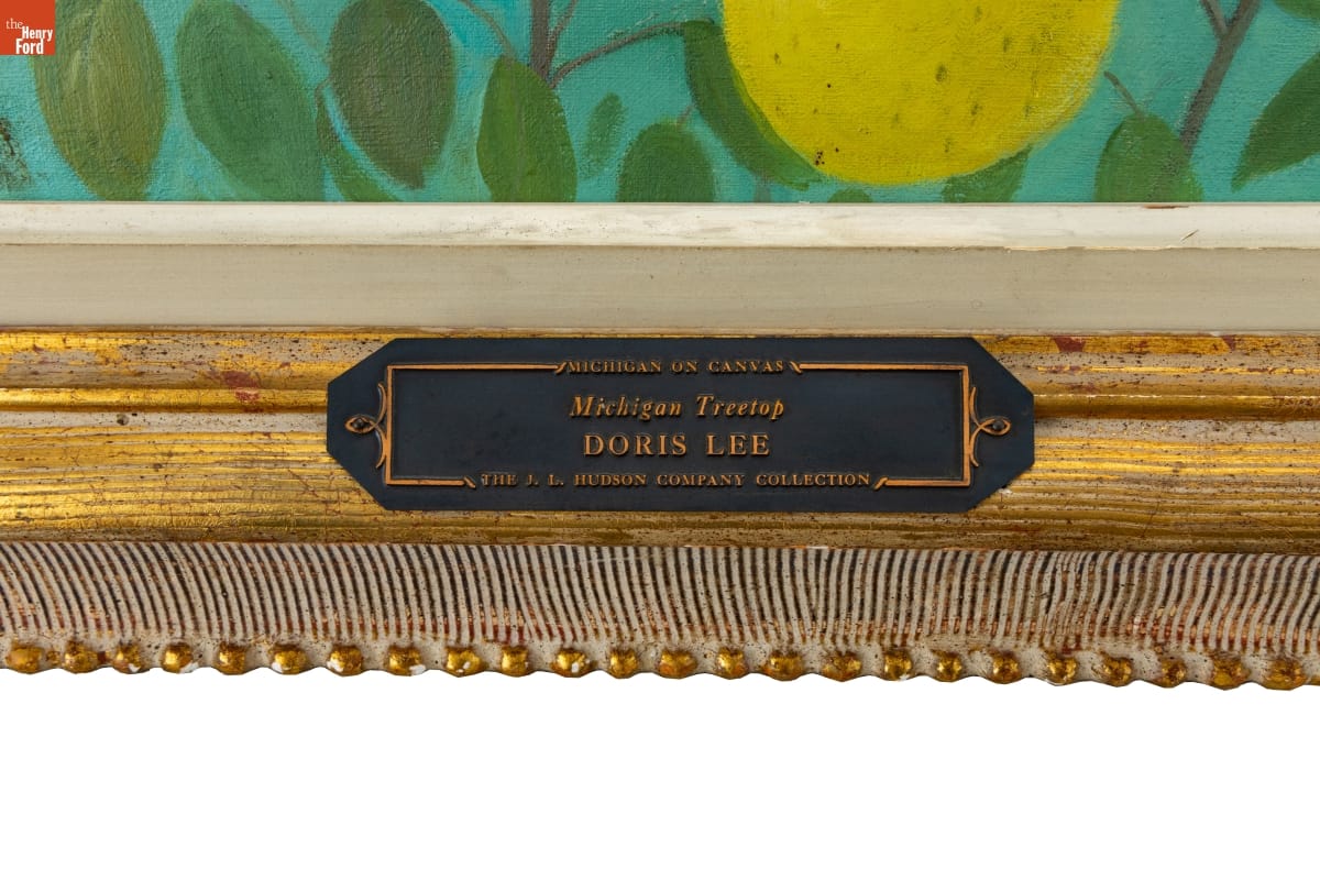 Doris Lee (1904-1983) painted scenes from everyday American life. Her later works, such as Michigan Treetop (1947), incorporated flattened shapes and simplified forms inspired by her interest in and collections of American folk art. The J.L. Hudson Company, a Detroit department store, commissioned this painting for the "Michigan on Canvas" exhibit, which traveled the state, including the Henry Ford Museum.