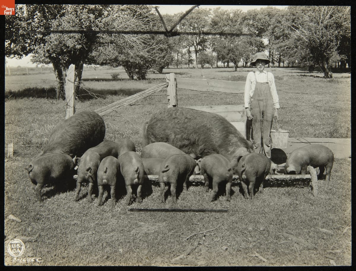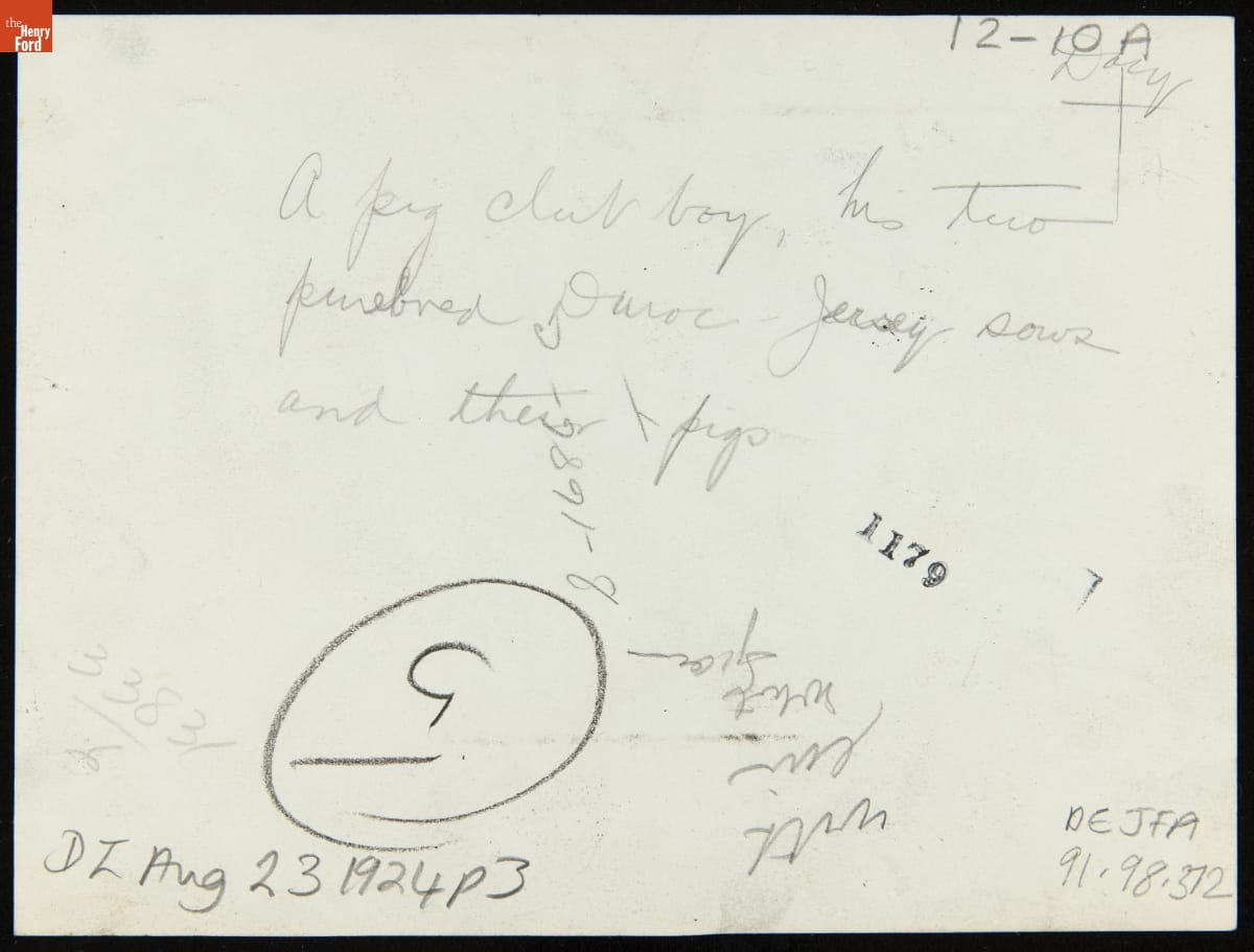 A Pig Club Boy, His Two Purebred Duroc-Jersey Sows and Their Pigs, 1922-1924