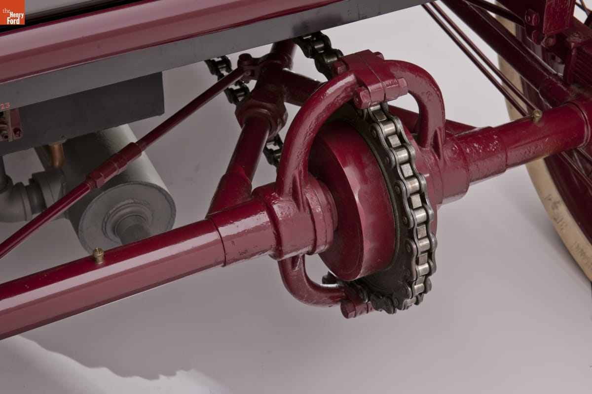Ford didn't work alone. His principal designer was Oliver Barthel. Ed "Spider" Huff worked on the electrical system, Ed Verlinden and George Wettrick did the lathe work, and Charlie Mitchell shaped metal at the blacksmith forge. The car they produced was advanced for its day. The induction system was a rudimentary form of mechanical fuel injection, patented by Ford, while the spark plugs may have been the first anywhere to use porcelain insulators. Ford had the insulators made by a Detroit dentist. The engine had only two cylinders, but they were huge: bore and stroke were seven inches each. That works out to a displacement of 538 cubic inches; horsepower was estimated at 26. Ford and Barthel claimed the car reached 72 miles per hour during its road tests. That doesn't sound impressive today, but in 1901 the official world speed record for automobiles was 65.79 miles per hour.