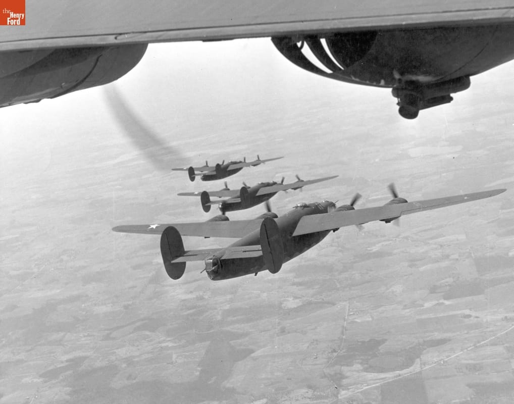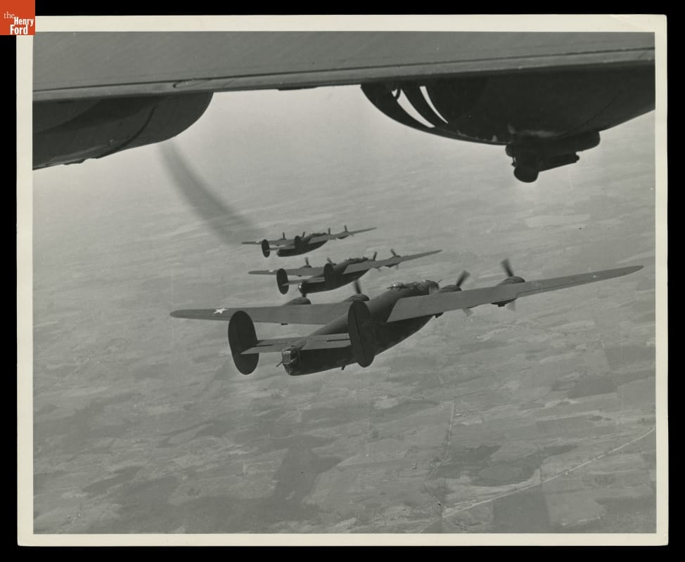 During World War II, Ford Motor Company built B-24 bomber airplanes at its Willow Run plant. Alongside the B-17, the B-24 formed the backbone of the Allies' air war over Europe. The airplanes and their crews attacked factories, railroads, harbors and -- as the war progressed -- cities in Germany, Italy and occupied France. The bombings curbed Germany's military and manufacturing capabilities.