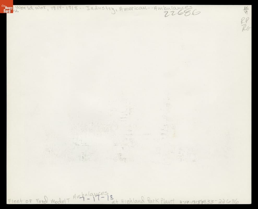 Ford Model T Ambulances outside Ford Highland Park Plant, July 1918