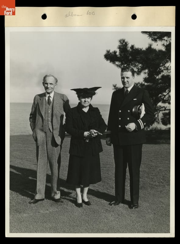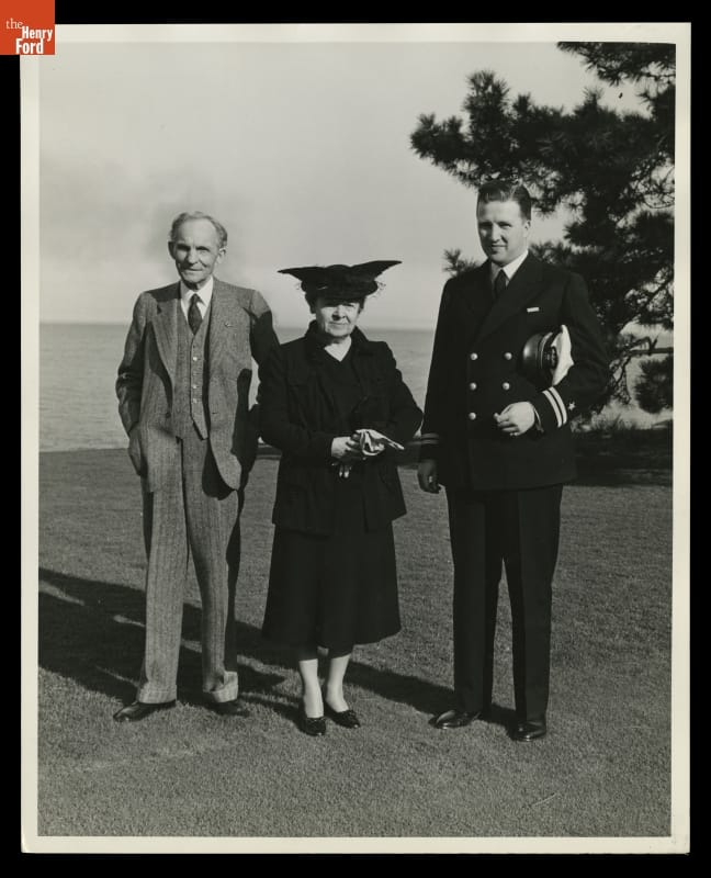 Henry Ford II posed with his grandparents, Henry and Clara Ford. The young Ford served in the U.S. Navy during World War II but, following the death of his father Edsel Ford in May 1943, he was released from duty to return to Ford Motor Company. Henry Ford II was appointed company president in September 1945, after his ailing grandfather resigned.