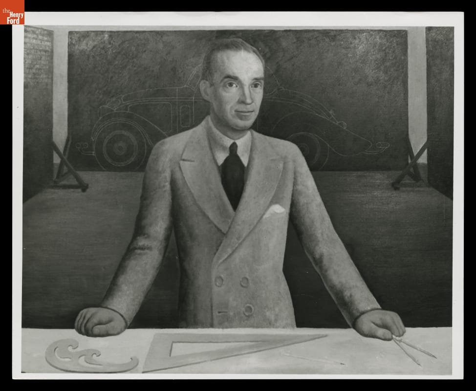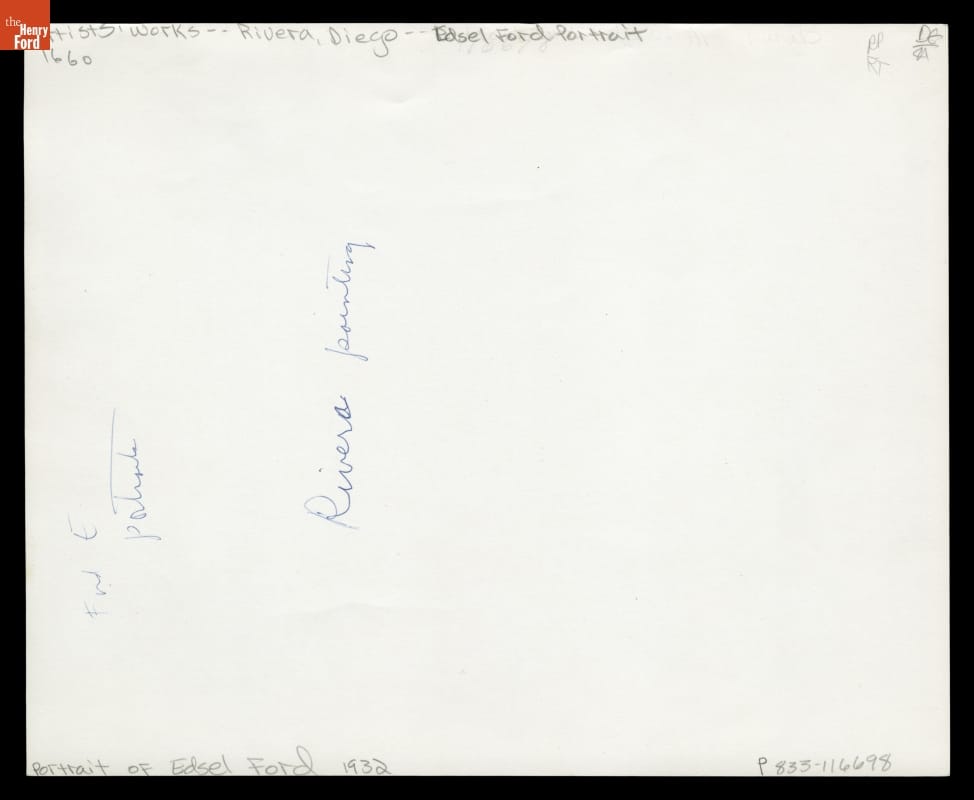Partway through work on his Detroit Industry murals at the Detroit Institute of Arts, Diego Rivera took a break to paint a portrait of the frescoes' primary sponsor, Edsel Ford. Rather than posing Ford in his office, Rivera chose a more appropriate setting: an automotive design studio. The portrait depicts Ford as strong and confident in his preferred environment.