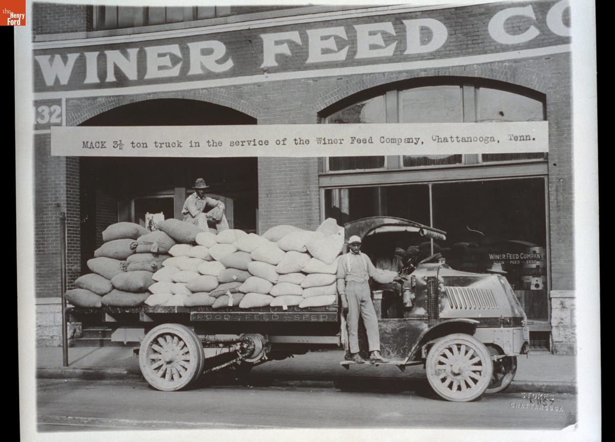 Mack Model AC Flatbed Truck Used by Winer Feed Company, Chattanooga, Tennessee, circa 1914