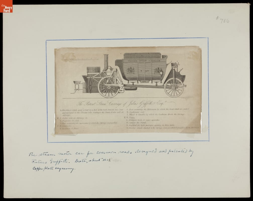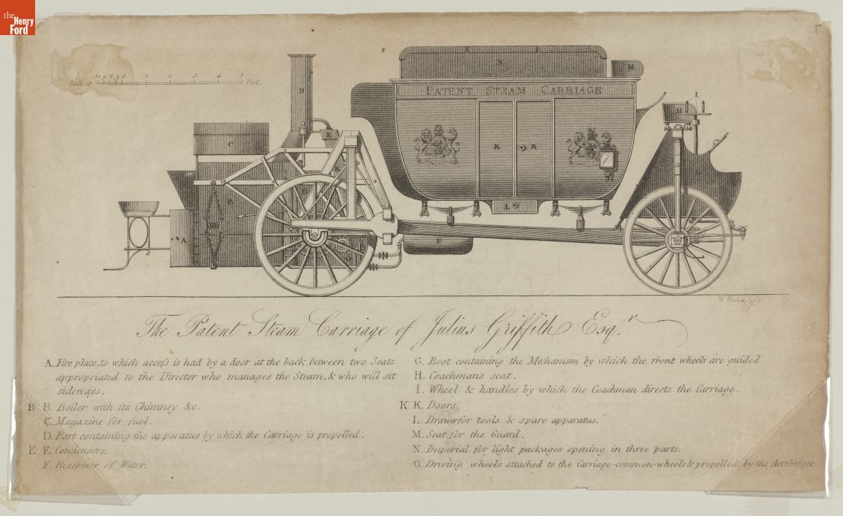 Copperplate Engraving, "Patent Steam Carriage of Julius Griffith Esq.," circa 1821