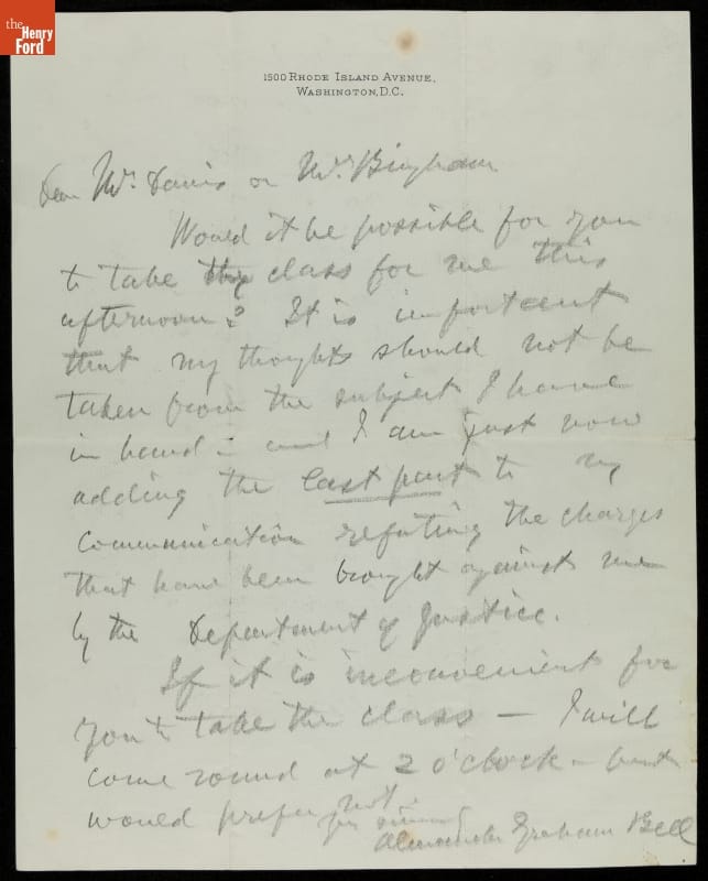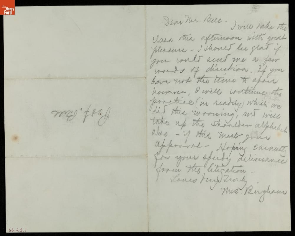 Letter from Alexander Graham Bell to Cornelia D. Bingham, with Reply on Reverse, circa 1913