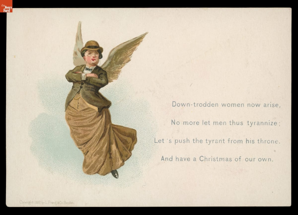 In the mid-1800s, Americans began mailing commercially designed European greeting cards wishing friends, family, or neighbors a merry Christmas. Domestically published holiday cards became available after 1874, when German immigrant Louis Prang - through the L. Prang and Company in Boston - began printing and selling Christmas cards in the United States. This is one of his designs from 1886.