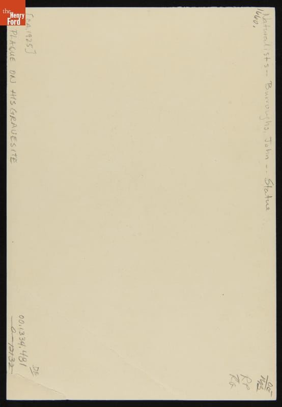 Plaque on John Burroughs' Gravestone, Roxbury, New York, circa 1925