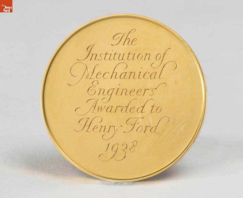 THE / INSTITUTION OF / MECHANICAL / ENGINEERS / AWARDED TO / HENRY FORD / 1938 [reverse]