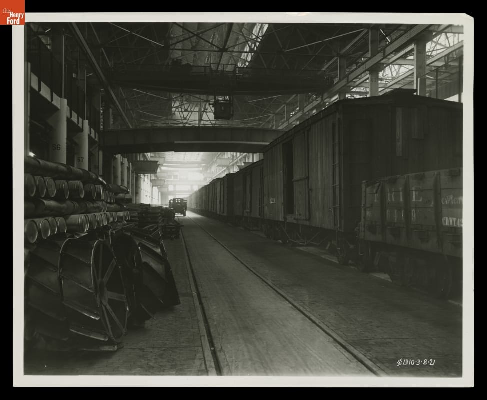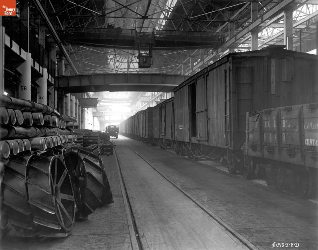 Railroad Cars and Fordson Tractor Parts at Rouge Plant, 1921