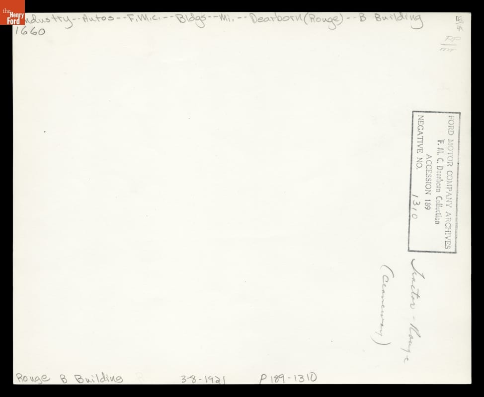 Ford's River Rouge Plant was conceived as a site for the mass manufacture of Fordson tractors. For a time, it was actually called the Fordson Plant. This photograph of the Rouge's "B" Building craneway shows tractor parts awaiting assembly. To make way for the Model A in 1928, tractor production was discontinued and relocated to Cork, Ireland.