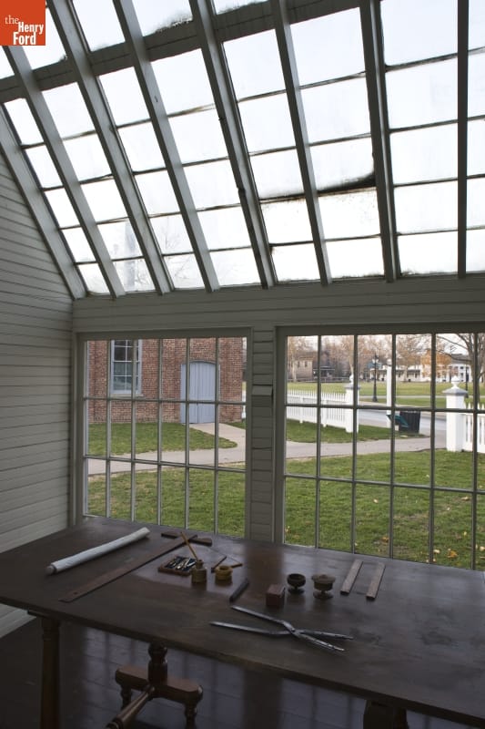 Originally built as a photographic studio and drafting room, the glassblowing shop was fundamental to Edison's enterprise. Edison's incandescent lighting experiments ensured that the laboratory had a voracious appetite for glass -- not only for bulbs but also for associated apparatus such as vacuum pumps. Ludwig Boehm, the laboratory's first master glassblower, worked here -- and lodged in the attic space.