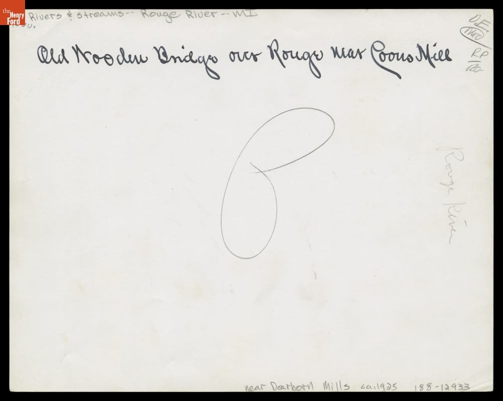 Old Wooden Bridge over Rouge River near Coons Mill, Michigan, circa 1925