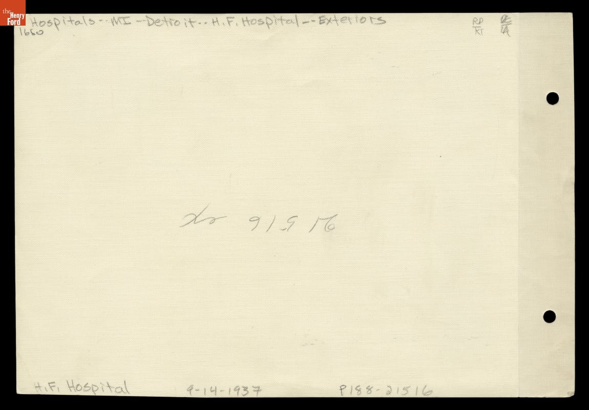 New Entrance to Henry Ford Hospital, Detroit, Michigan, 1937