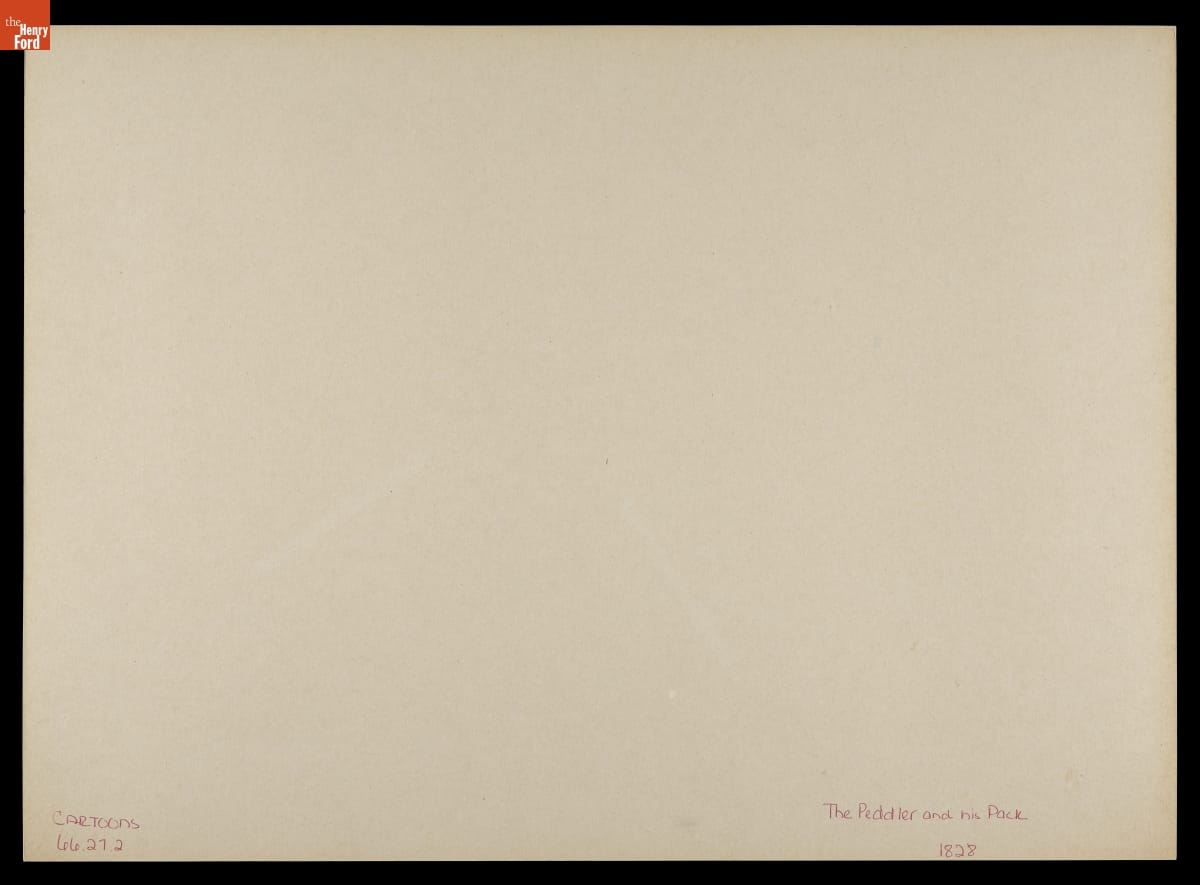 Aquatint, "The Pedlar and His Pack or the Desperate Effort, an Over Balance," 1828